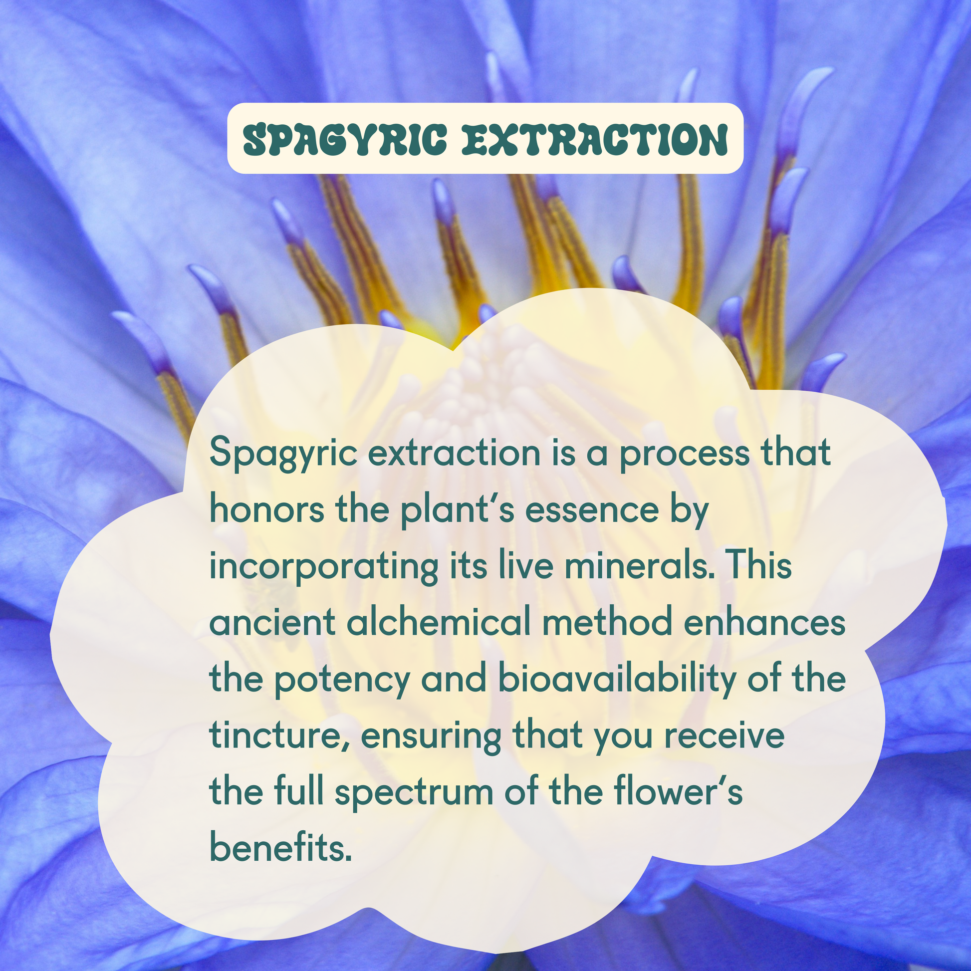 *Spagyric extraction is a process that honors the plant's essence by incorporating its live minerals. This ancient alchemical method enhances the potency and bioavailability of the tincture, ensuring that you receive the full spectrum of the flower’s benefits.